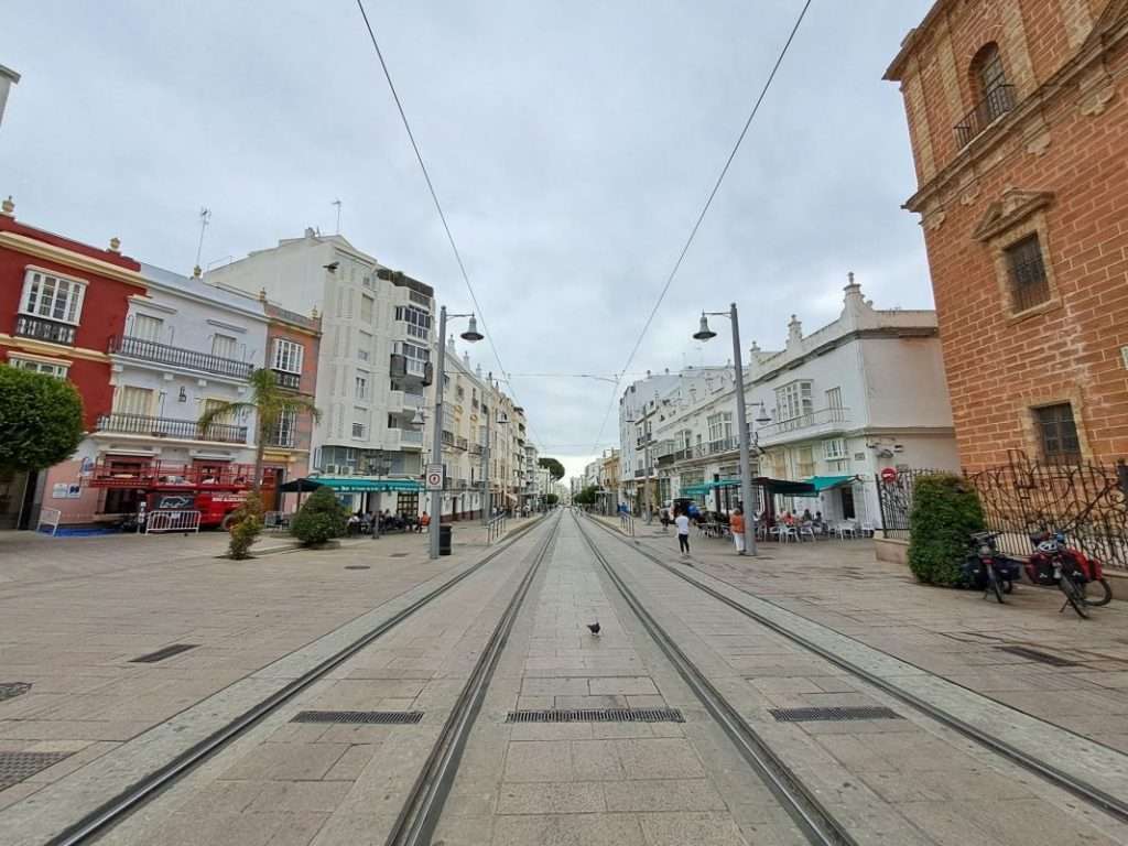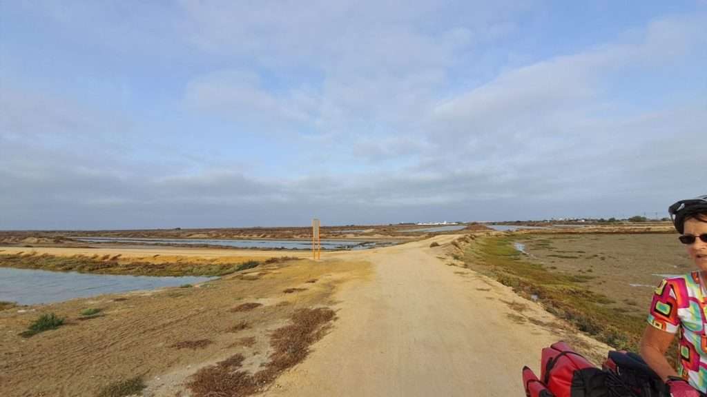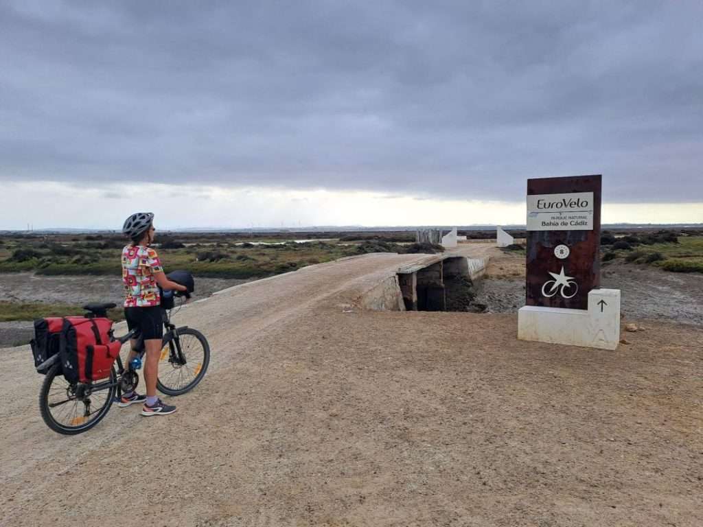 Wir folgen einem schmalen Damm, der Cádiz mit dem Festland verbindet, bestehend aus Schnellstraße, Radweg und Bahntrasse.