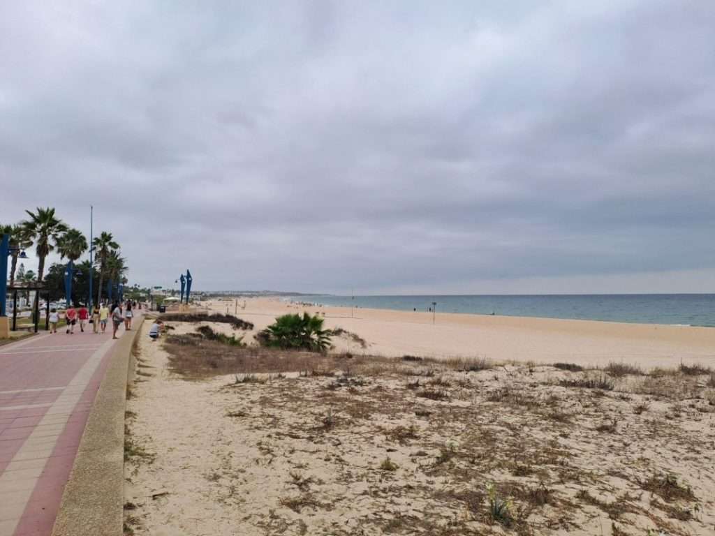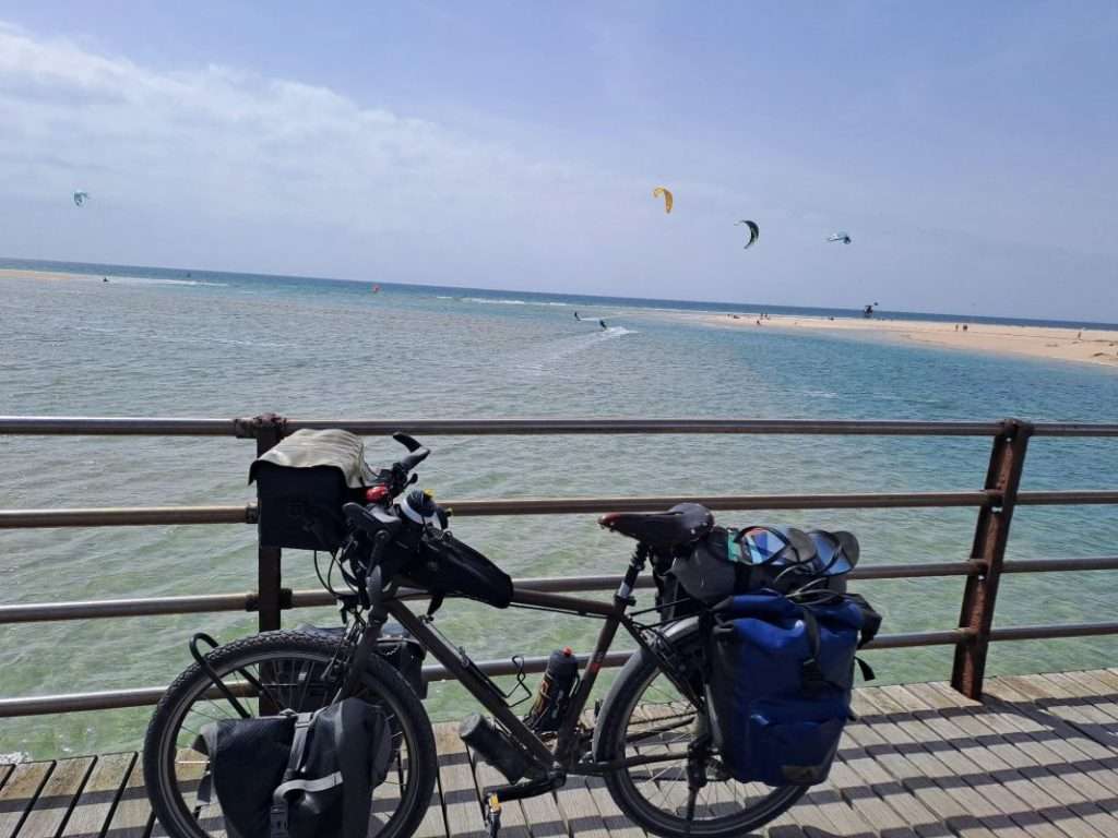 Am Playa de la Barrosa stoßen wir wieder auf die Küste. Zeit für Kaffee und die Stullen.