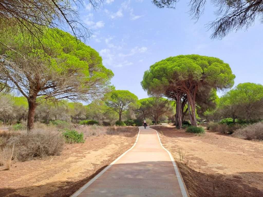 Bei Roche hat die Junta de Andalucia (das ist wohl die Straßen-Gesellschaft) einen herrlichen Radweg angelegt. Dieser bildet ein Teilstück des Eurovelo 8 und führt hier durch einen schönen Pinienwald.