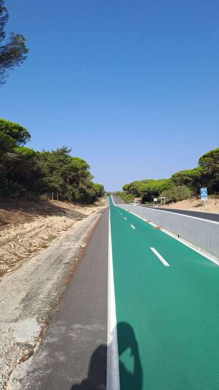 Der erste harte Brocken kommt schon bald, denn es ist eine Anhöhe von 170 m zu bewältigen. Die Radwege sind mal wieder perfekt angelegt und in grün abgesetzt.