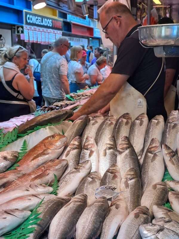 Dann zur Markthalle. Sehr lebhaft hier mit einem riesigem Angebot an Meeres- und exotischen Früchten.
