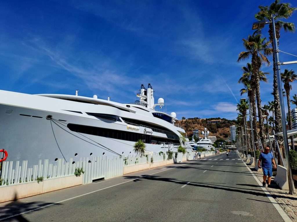 Weiter zum Hafen, wo gerade die Mega-Yacht Dynasty mit 100 m Länge liegt.