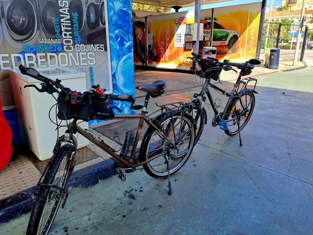 Durch die Stadt zur Tankstelle, um die Räder zu waschen. Die haben es bitter nötig.