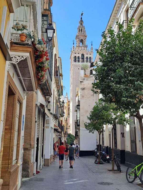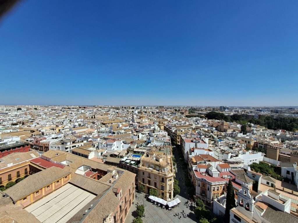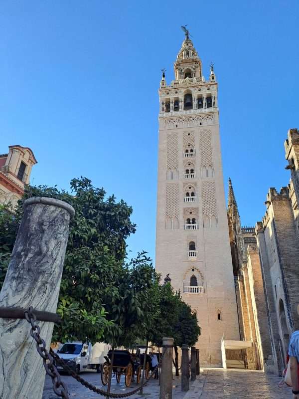 Der Giralda-Turm an der Kathedrale mit 108 m darf nicht fehlen. Über die Rampen ritt einst der Sultan auf dem Pferd hinauf, um die Aussicht zu genießen. Wir fahren mal nicht mit den Rädern hoch, sondern gehen zu Fuß.