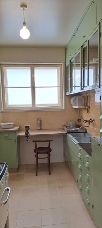 Frankfurter Küche aus den 1920,ernOberteil der DeckeHier kann man von oben den Restauratoren auf die Finger schauen