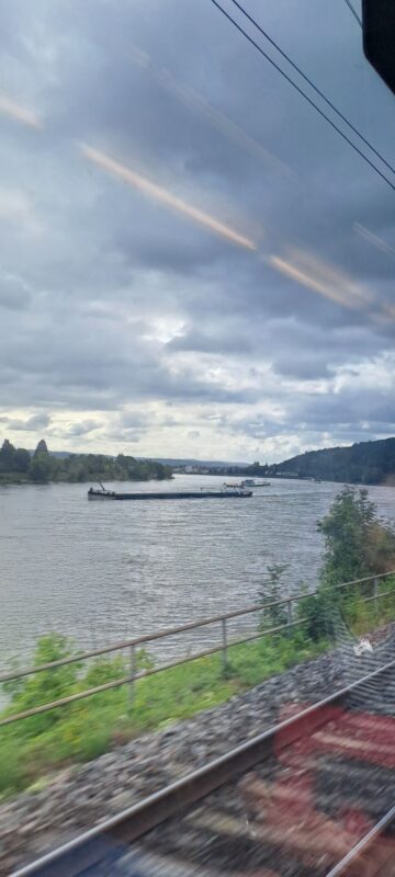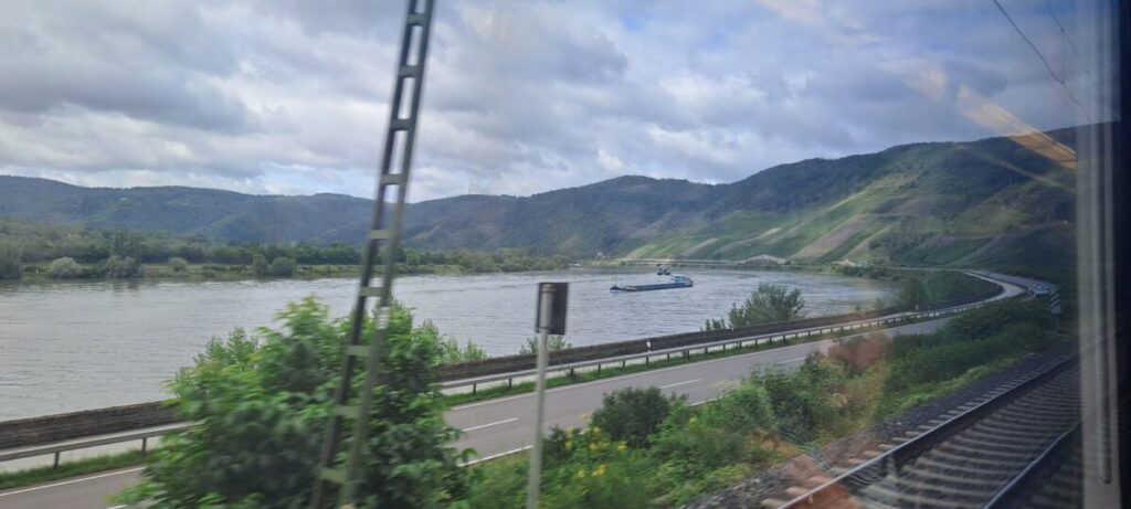 Wir genießen die schönen Aussichten auf der Rheinstrecke.