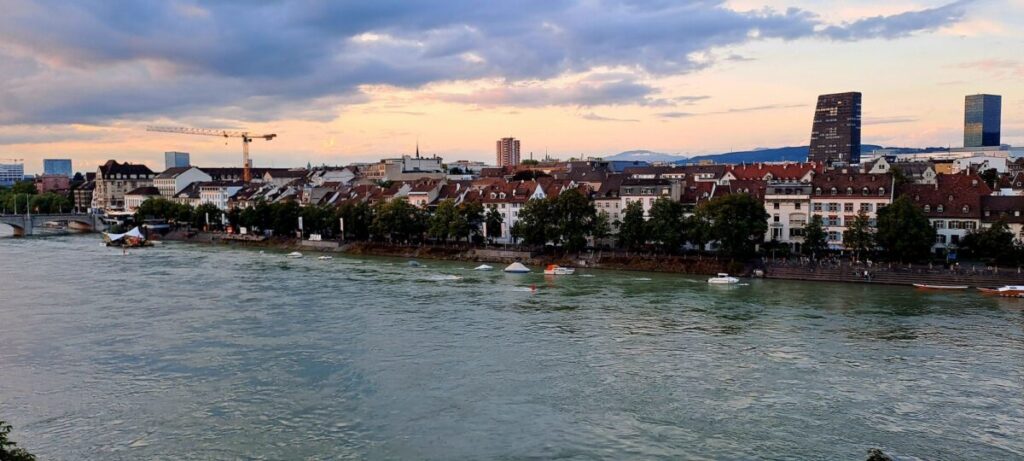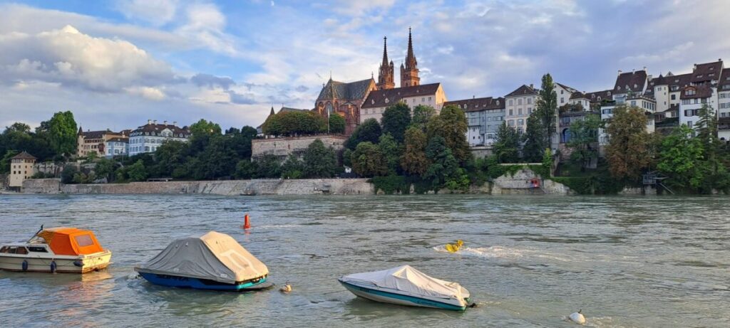 Basel empfängt uns nach fast fünfstündiger Bahnfahrt mit einem Regen, der sich gewaschen hat. Unser Hotel erreichen wir in nur 2 km Entfernung vom Bahnhof, total durchnässt.