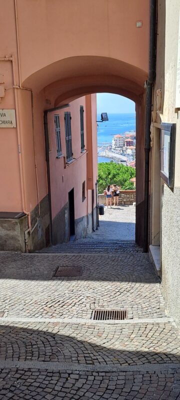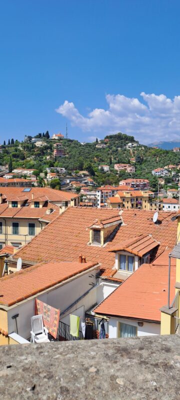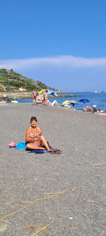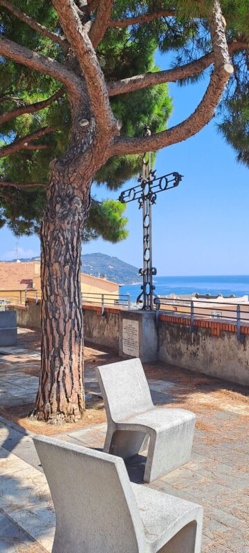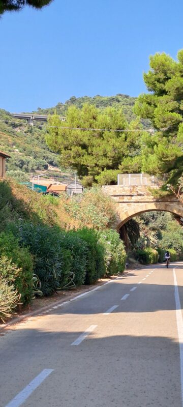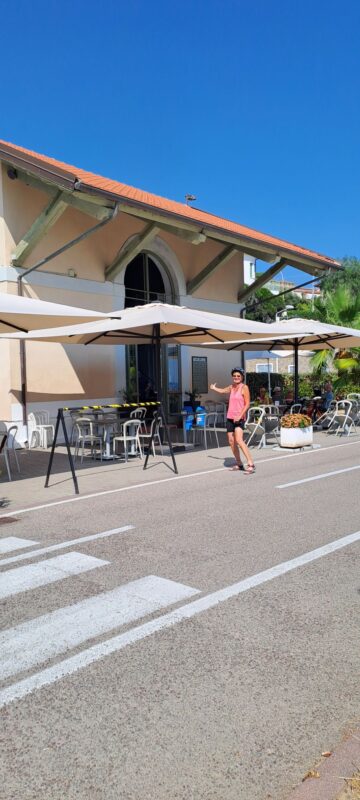 Einen Kaffee am Nachmittag nehmen wir wieder in dem Café an der Bahntrasse in „Santo Stefano al Mare“ ein. Was für ein klangvoller Name.