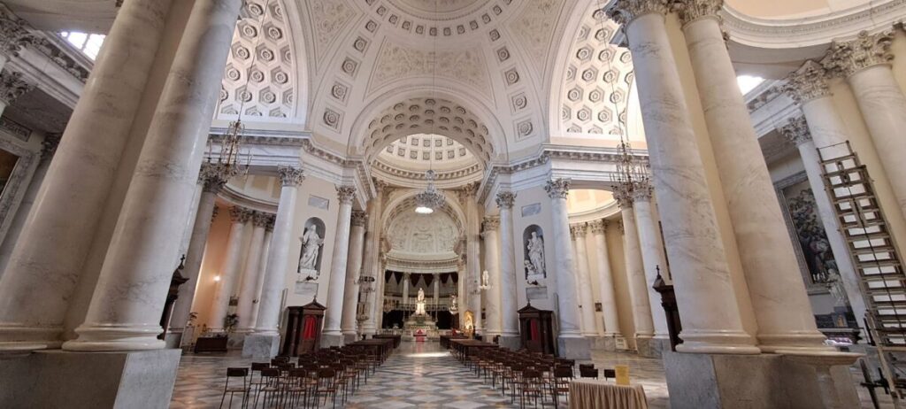 An Kirchen kommt man hier natürlich nicht vorbei. In der Tat ein majestätischer Bau ist die Basilika di San Maurizio oben auf dem Hügel.