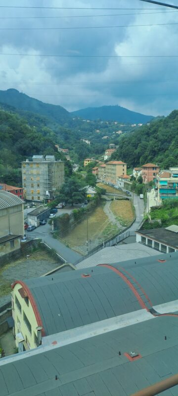 Hinter Genua fahren wir nordwärts durch die Berge. Gefühlt befinden wir uns die meiste Zeit in Tunneln. Kaum hat man ein interessantes Motiv der Berglandschaft vor der Linse, schon ist man wieder von Dunkelheit umgeben.