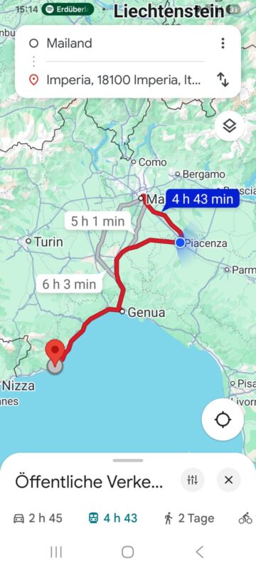 Die Strecke führt an der Küste entlang über Savona nach Genua. Bis Savona kennen wir alle Städte von unserer Hinfahrt.