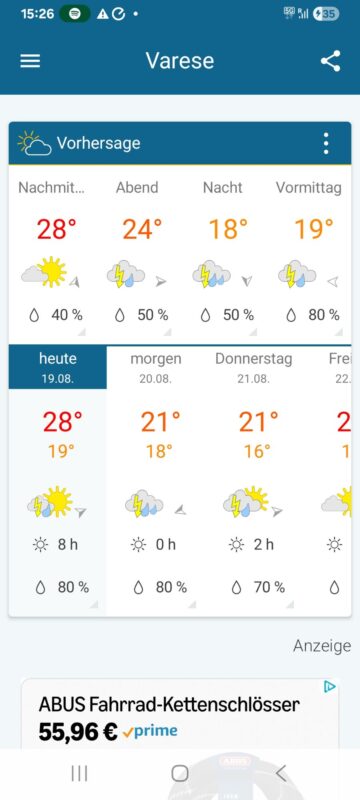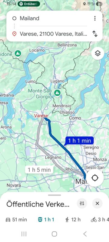 Der Plan steht: Von Imperia mit dem Intercity 4,5 Std. nach Mailand Centrale, dann mit dem Rad 5 km zum Bahnhof Mailand Bovisa Politecnica, von dort mit dem Regionalzug 1 Std nach Varese. In Varese werden wir uns zwei Tage in einem Apartment einnisten, um die zu erwartende Gewitterfront mit Starkregen von bis zu 20 ltr./qm über uns durchziehen zu lassen.