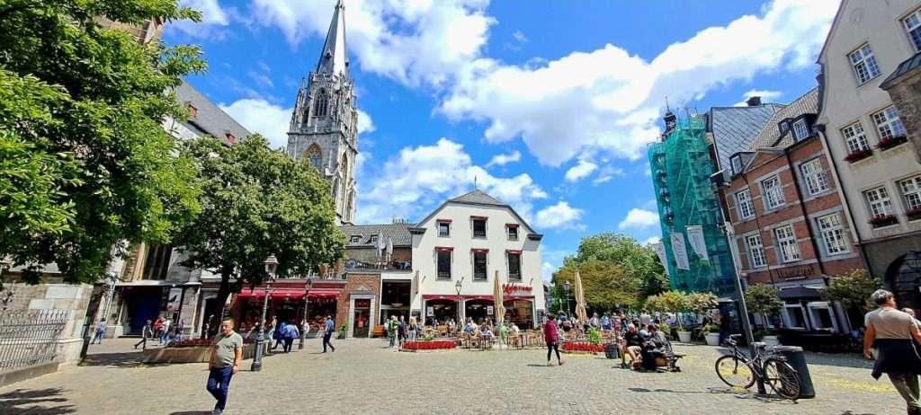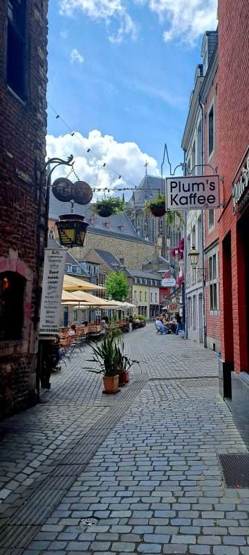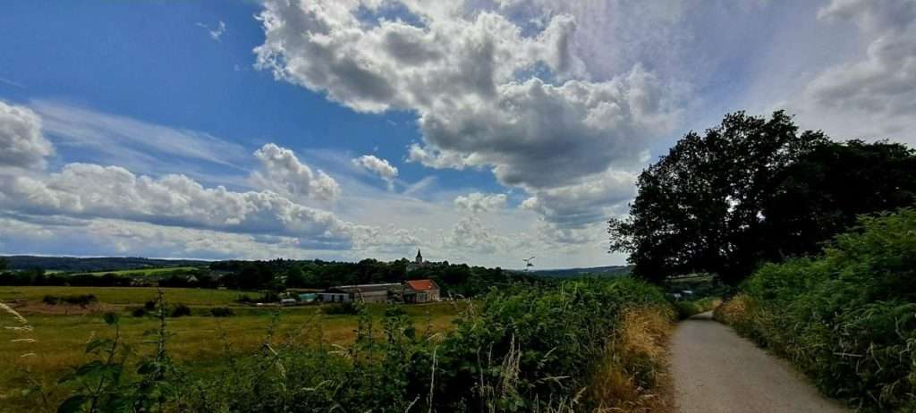 Nachdem die letzten Tage wirklich brüllend heiß waren (gestern 34 Grad), rauscht pünktlich zu meiner Abfahrt ein kleines Tief aus dem Westen heran. Es bringt eine willkommene Abkühlung, aber auch ein wenig Nieselregen und vor allem: kräftigen GEGENWIND, der mir 70 km bis nach Aachen ins Gesicht bläst.