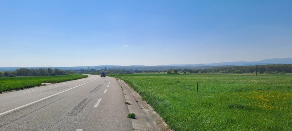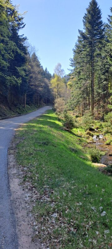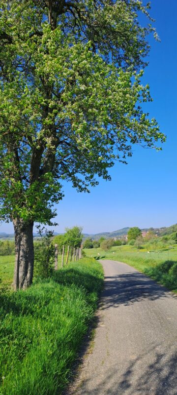 Ab Monswiller schraube ich mich von 240 auf 870 m hoch. Ganz schön anstrengend, aber eine große Freude bei dieser schönen Landschaft.