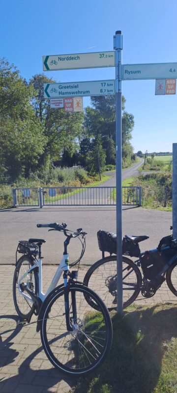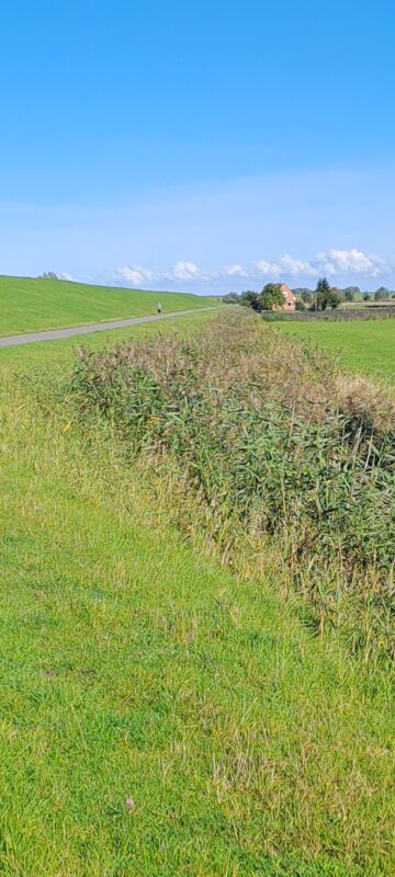 Ein Abstecher von 10 km zum Haus meines ehemaligen Kollegen Roland in Krummhörn-Pewsum ist leider ohne Erfolg. Keiner zu Hause. Ein Überraschungsbesuch wäre schön gewesen. Beim nächsten Mal, lieber Roland. Schön habt ihr’s hier.