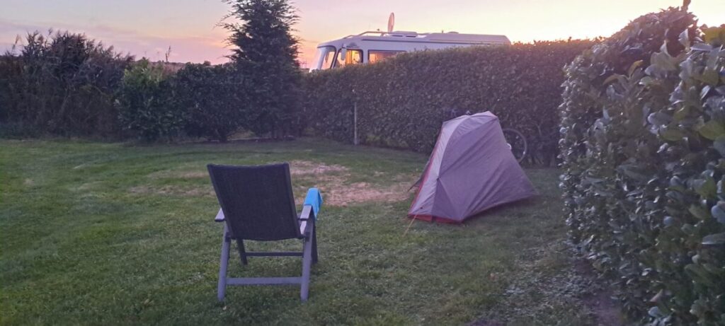 Unterkunft des Tages ist das weite Feld hinter dem Campingplatz Tekken für 10 Tacken.