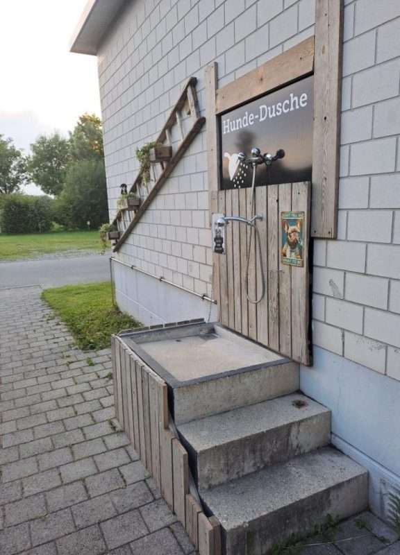 Ich steuere daher schon recht früh den Campingplatz in Sempach an. Erste Klasse, den kann ich nur empfehlen. Hier gibt es für 25 CFR sogar eine Hundedusche, einen gut ausgestatteten Aufenthaltsraum und eine kleine Badestelle. Alles blitzblank hier. Supporten kann ich mich im benachbarten COOP.