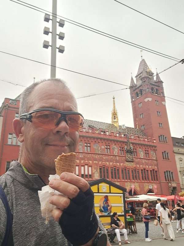 Ich habe doch noch Fränkli gefunden, die gut in Eis investiert sind. 2 Kugeln 9 CFR, das sind ca. 10 €! Leider habe ich nicht viel davon, denn die obere Kugel hält meiner gierigen Zunge nicht stand und hüpft auf den Basler Asphalt. So ein Mist. Und gerade beim teuersten Eiskügelchen ever!