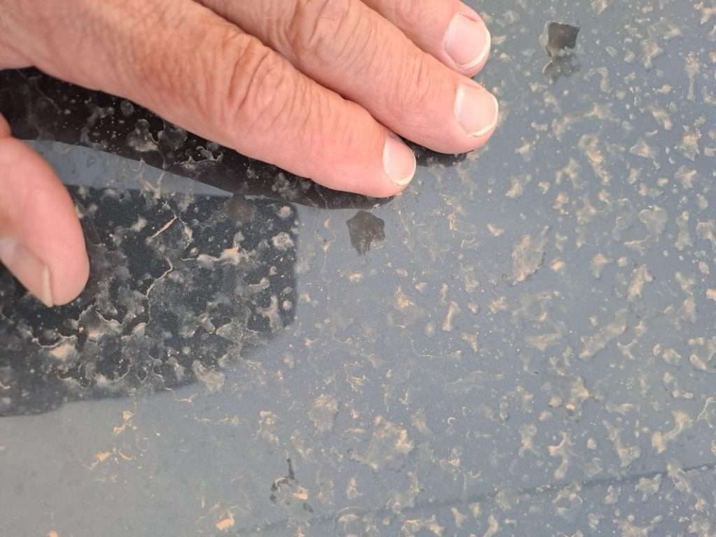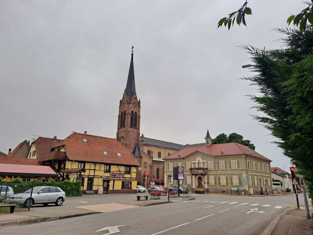 Also keine guten Bedingungen zum Zelten. So buche ich vorsichtshalber eine Unterkunft in Village-Neuf, Frankreich. Schon überrascht mich ein kurzer aber ganz ekliger Saharastaubregen, der alles gelb sprenkelt.
