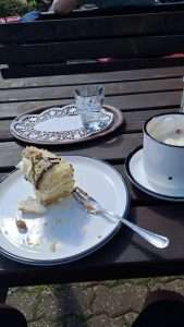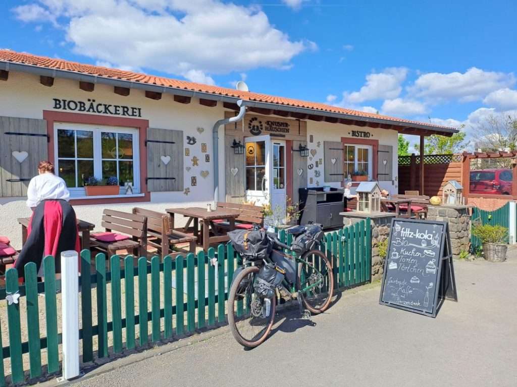 Höher und höher. Die Erlösung vor dem Hungerast: das Knusperhäuschen wartet nach 113 km auf 627 m Höhe mit leckerer Sahnenusstorte. Der höchste Punkt der Tour ist erreicht.
